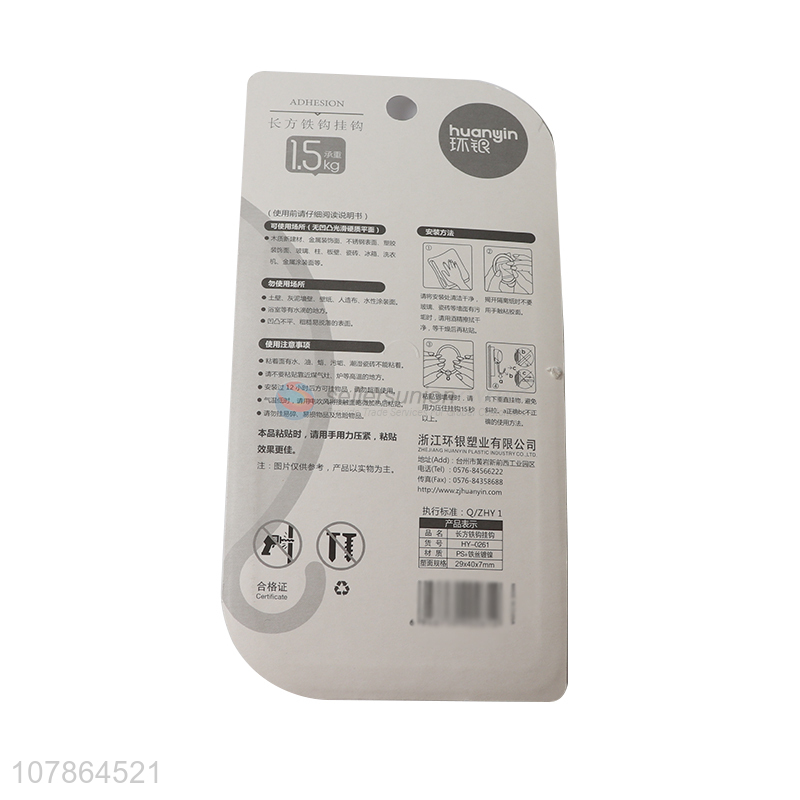 Low price rectangular strong adhesive hook bathroom kitchen hook