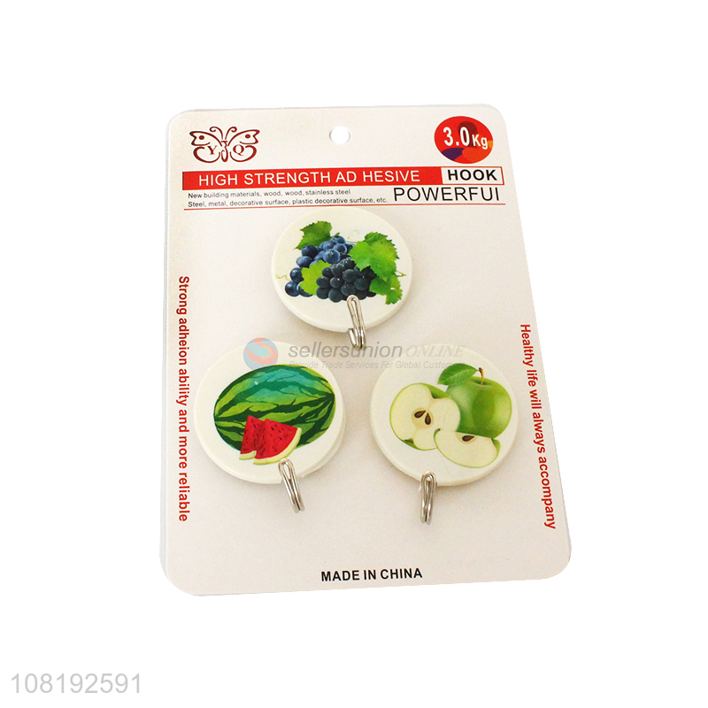 Best Sale 3 Pieces Fruit Pattern Sticky Hooks Cheap Adhesive Hooks