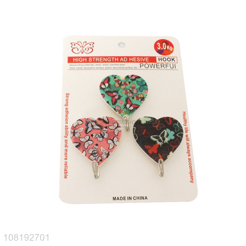 Low Price 3 Pieces Heart Shape Sticky Hook Custom Wall Hooks