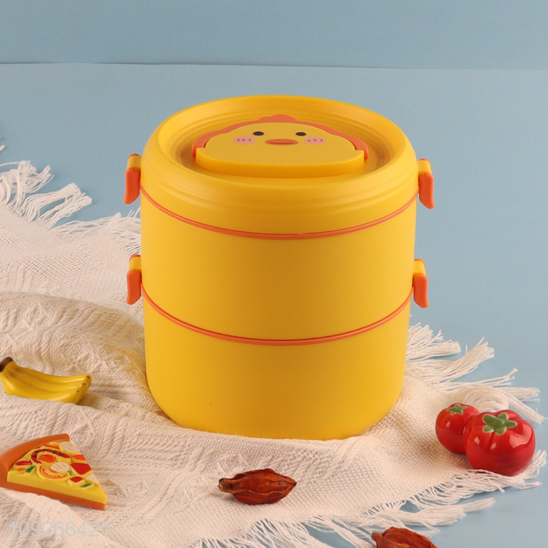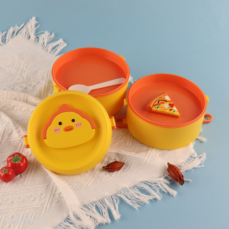 Wholesale 2-Layer Portable Round Cute Plastic Lunch Box with Spork for Kids