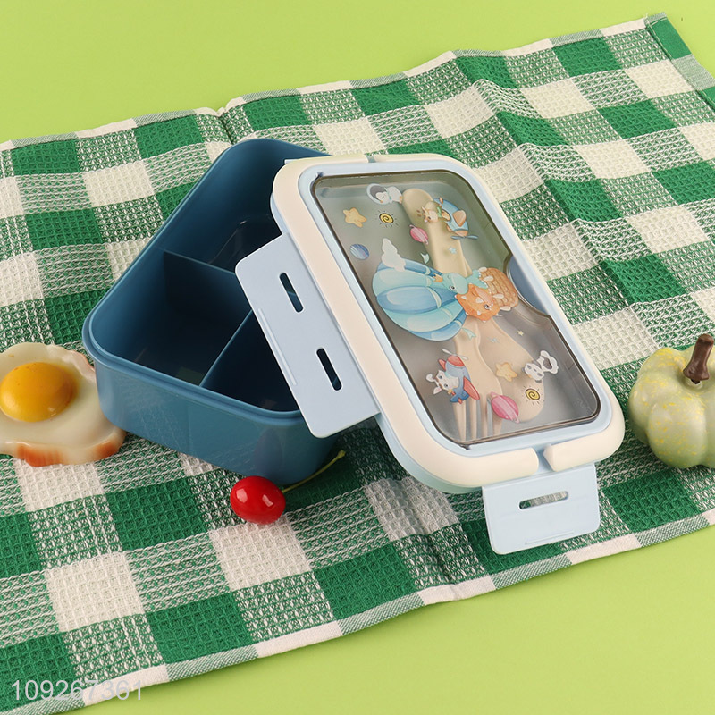 Most popular portable cartoon plastic lunch box set for school kids