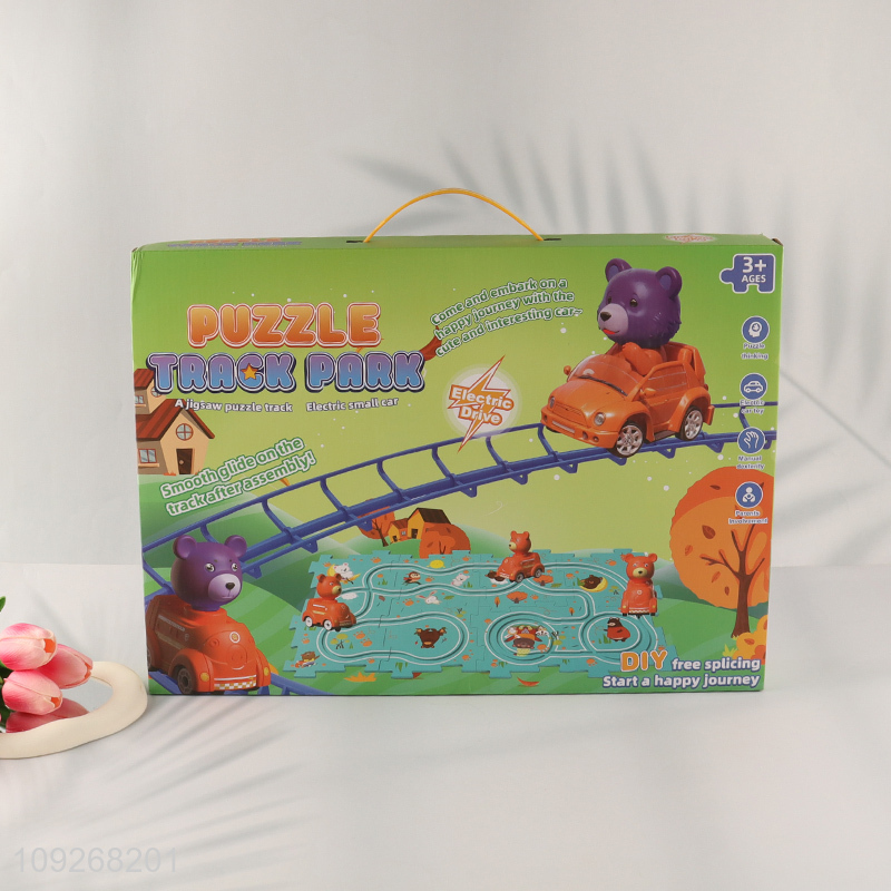 Yiwu market cartoon children puzzle game electric rail car toys for sale