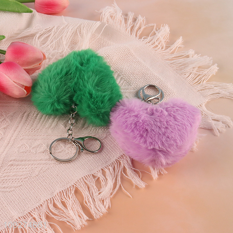 Yiwu market heart shape plush keychain key rings